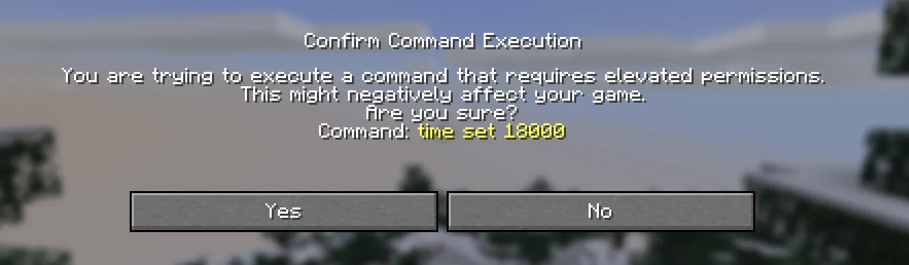At first glance, this works just fine. But it does have a very big flaw - since the player’s client is not aware of the requirement, it still shows the command as executable, even if the requirement resolves as false. But if the client tries to run the command, the server reports that this command doesn’t exist (meaning the requirement was not met):